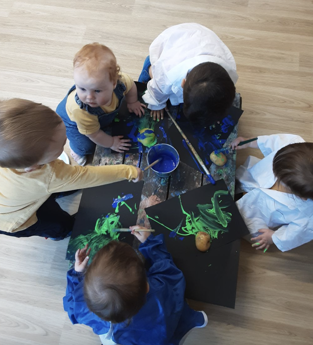 Greater access throughout the day to all areas of our provision. The Baby Bears children will be using their "living room", "messy room" and outdoor provision equally throughout the nursery day. The big bears children will be using the upstairs play space in the setting, the messy room at the rear of the building (Atelier - see two pages ahead) and the front and back gardens throughout the entire day with choice to access all areas of provision through the whole nursery day for both baby bears and big bears.